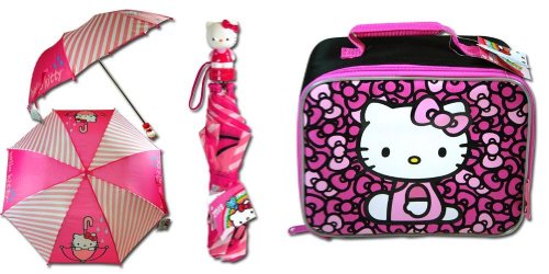 Hello Kitty "Black Bows" Rectangle Lunch Bag (Item Size: 9.75" x 8" x 4") and Hello Kitty Retractable Umbrella (Item Size: 13.75" x 2" x 2")