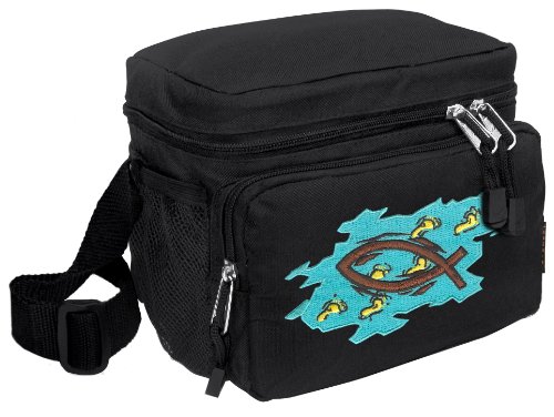 Our tough deluxe Christian lunch box cooler bag is just the right size for lunch or travel. This well-insulated bag contains a roomy main compartment and a zippered front pocket. Top quality construction with additional convenience features such as a double-zipper wrap-around closure, and an adjustable shoulder strap. This bag also works great as a cosmetic or travel accessories bag! 10.75 x 10.25 x 6.5