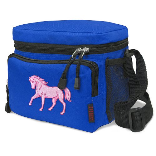 Our tough deluxe Cute Pink Horse lunch box cooler bag is just the right size for lunch or travel. This well-insulated bag contains a roomy main compartment and a zippered front pocket. Top quality construction with additional convenience features such as a double-zipper wrap-around closure, and an adjustable shoulder strap. This bag also works great as a cosmetic or travel accessories bag! 10.75 x 10.25 x 6.5