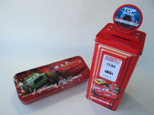 Disney Pixar Cars License Lightning Mc Queen Reusable Pencil Tin with the World Is Our Raceway Bank