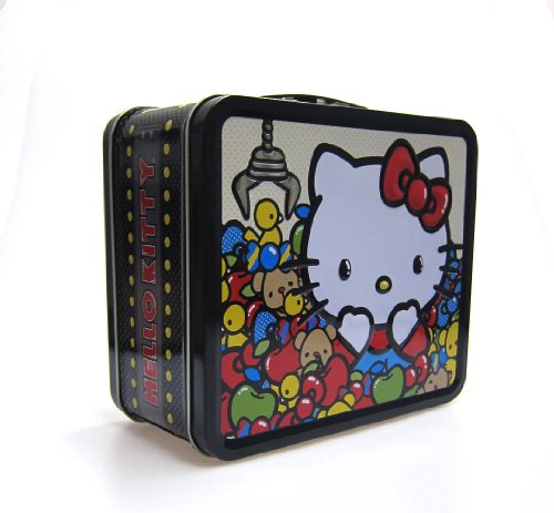 This cool lunchbox will be your little Hello Kitty fan's favorite accessory!!! It has a secure clasp, and a hinged top that opens completely for putting all kinds of favorite treasures inside!!! So cute, your little Hello Kitty fan will LOVE it!!! Hello Kitty Lunch Box is made out of tin metal with printed and embossed graphics and measures 8 inches wide x 7 inches tall x 4 inches deep.