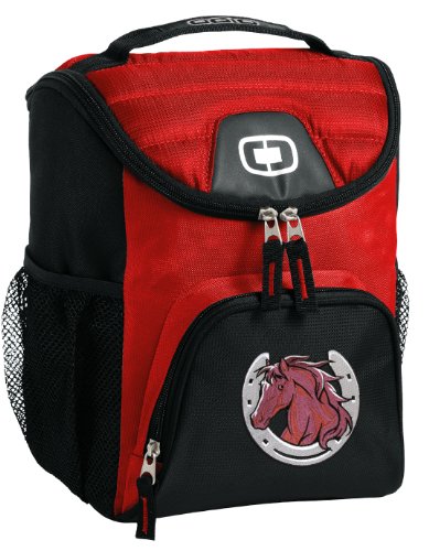 Our tough deluxe Horse Theme lunch box cooler bag is just the right size for lunch or travel. This well-insulated bag features a roomy, zippered, main compartment that holds 6-12 twelve oz. cans and a zippered front pocket. Top quality construction with additional convenience features such as a double-zipper wrap-around closure, extra long Easy-Grab zipper pulls, and to more side mesh pockets. This bag also works great as a cosmetic or travel accessories bag! 10.5 x 8.5 x 7
