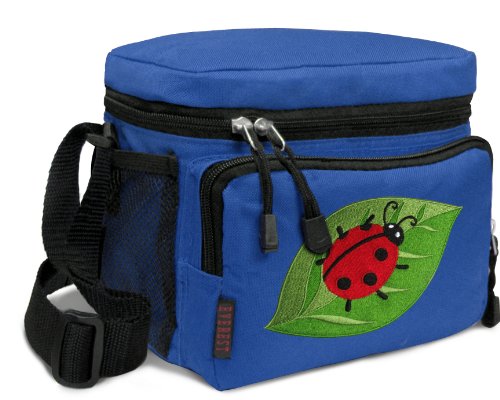 Our tough deluxe Ladybug lunch box cooler bag is just the right size for lunch or travel. This well-insulated bag contains a roomy main compartment and a zippered front pocket. Top quality construction with additional convenience features such as a double-zipper wrap-around closure, and an adjustable shoulder strap. This bag also works great as a cosmetic or travel accessories bag! 10.75 x 10.25 x 6.5