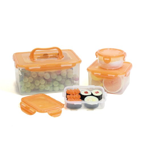 Lock&Lock 8-Piece Lunch Box, 4 Containers, Orange Lid