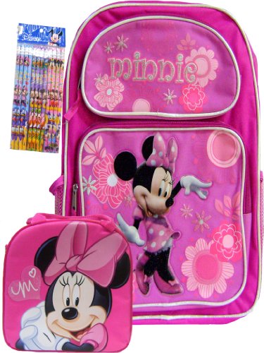 New Minnie Mouse Pink Backpack Matching Lunch Box Free Pack of Pencils