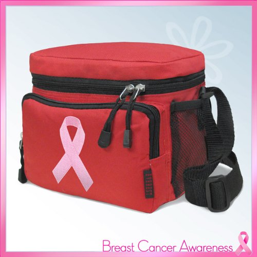Pink Ribbon Lunch Box Cooler Bag Insulated Red Breast Cancer Awareness - Top Quality Unique Lunchbox or Red Cushioned Travel Bag