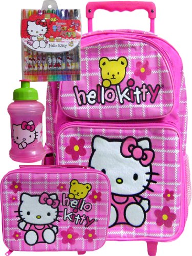 School Hello Kitty Pink Rolling Backpack Matching Lunch Box & Water Bottle