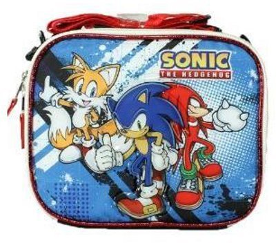 Sonic the Hedgehog Chaos Heroes Insulated Square Lunch Box Bag. This high quality lunch box measures about 10 by 4 by 8 inches and features a handle for holding and a strap for carrying. With Sonic, Tails, and Knuckles this bag will make a great gift for someone you know!