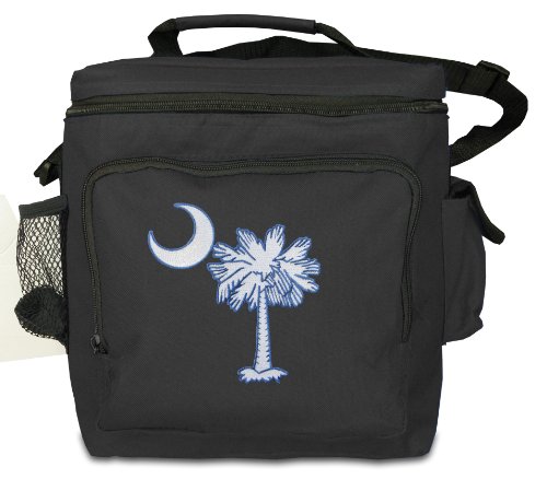 Our tough deluxe South Carolina Palmetto lunch box cooler bag is just the right size for lunch or travel. This well-insulated bag contains a roomy main compartment and a zippered front pocket. Top quality construction with additional convenience features such as a double-zipper wrap-around closure, and an adjustable shoulder strap. This bag also works great as a cosmetic or travel accessories bag! 10.75 x 10.25 x 6.5