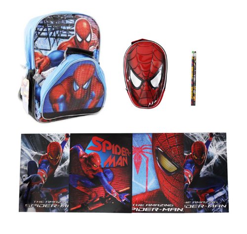 Spider-Man 16 Inch Backpack with Detachable Utility Pack and ULTIMATE Back To School Set Includes Spider-Man Insulated Lunch Tote, 4 Spider-Man Folders, and 2 Spider-Man Pencils. This is the Ultimate Spider-Man Back To School Set!Spider-Man 16 Inch Backpack with Detachable Utility Pack (Blue and Red) Features:Backpack measures around 16x12x4". Large size;Soft and insulated lunchbox measures around 10x8";Velcro straps that link both bags together on the front;Micro silk art design; Padded shoulder straps for comfortable wear;OFFICIAL LICENSED PRODUCT.Spider-Man Lunch Kit - Spider-Man Head Design Features:Three-side zipper offers easy access for packing lunches;Soft-sided, insulated lunch box is lightweight and keeps school lunches fresh;Durable polyester material promises years of use;Spider-Man head design makes this lunch kit perfect for fans of the movies;Single compartment offers plenty of room for a healthy lunch; Dimensions12 x 7.5 x 4