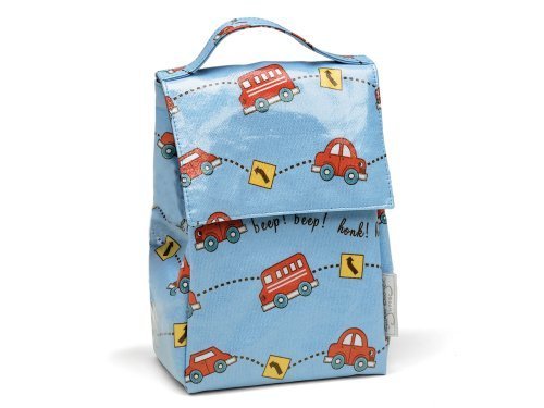 The Vroom Lunch Sack has a laminated cotton canvas, which is fully insulated to keep thing cool or warm. It has a soft material which makes it easy to carry. This lunch sack has a hook n loop closure, card ID info, and a handle strap. It can also be used for bottles, or juice boxes.