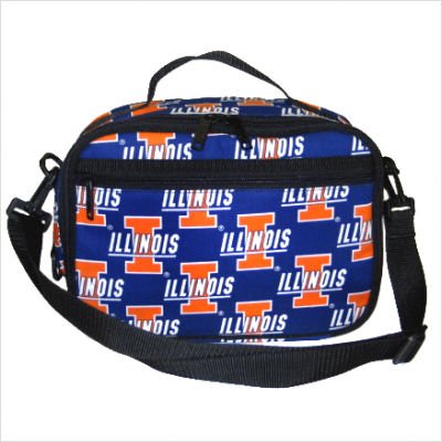 The Broad Bay University of Illinois lunch box is functional, versatile, and constructed like a fine piece of luggage. With so many fabric choices, you'll want to pack your lunch every day. Adjustable, removable strap allows you to carry your lunch bag horizontally or vertically, over your shoulder, or slipped through your hand. Interior mesh pocket has thermo-reflective liner. Outer zip pocket for utensils or for keys and a wallet. Dual zip closure. Two elastic mesh straps hold your sandwich close to your cold pack or hold your bottles secure. Durable and machine washable. 10.25" x 7.75" x 4.25"