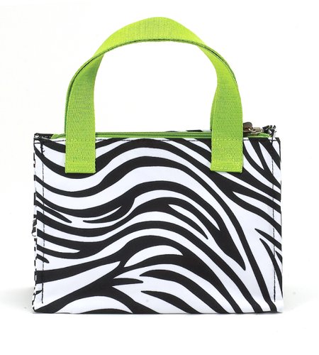 Decorative lunch bag is perfect for the office, school or the golf course!Fun Lunch Bag, is a soft sided, thermal insulated bag with a Zippered top and a fabric handle.Will fit in wherever you go.Dimensions: 9 3/4"W x 8"H x 5"